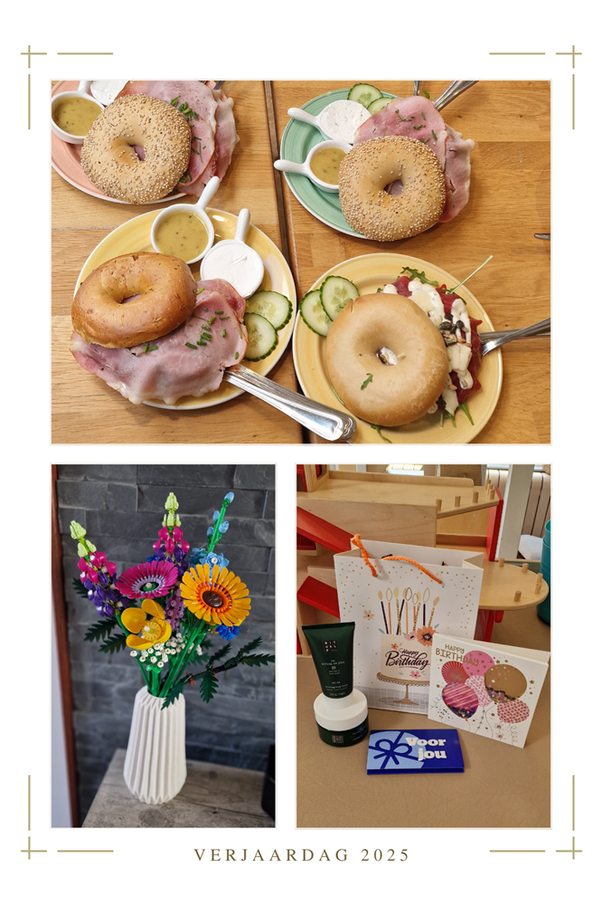 Ik kreeg een tof LEGO bloemenset cadeau, die ik samen met Noa gelijk in elkaar ging zetten. Ook at ik heerlijk taart om het te vieren. Voor mijn verjaardag ging ik met vriendinnen een weekje erna naar de Bagels & Beans en werd flink verwend met bonnen die ik wilde hebben. Ook op mijn werk kreeg ik een fijn presentje.