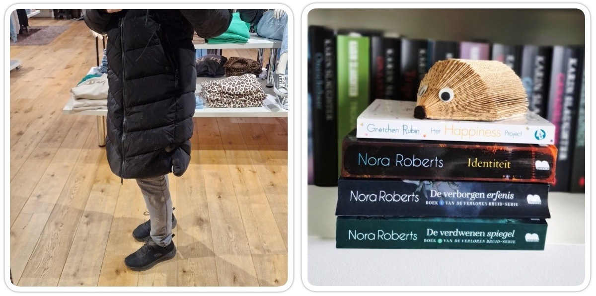 Ik kocht éindelijk een nieuwe winterjas. Rib uit m’n lijf maar hij was zo nodig. Had het die winter ervoor maar koud. Erg blij dus met mijn zwarte, lange, dikke winterjas. Ook kocht ik 2 nieuwe boeken van Nora Roberts (Verloren bruid deel 1 & Identiteit) en had ik hierdoor weer veel leesplezier. Ook kocht ik wat fijne huisbroeken waar ik tot de dag van vandaag nog blij mee ben.