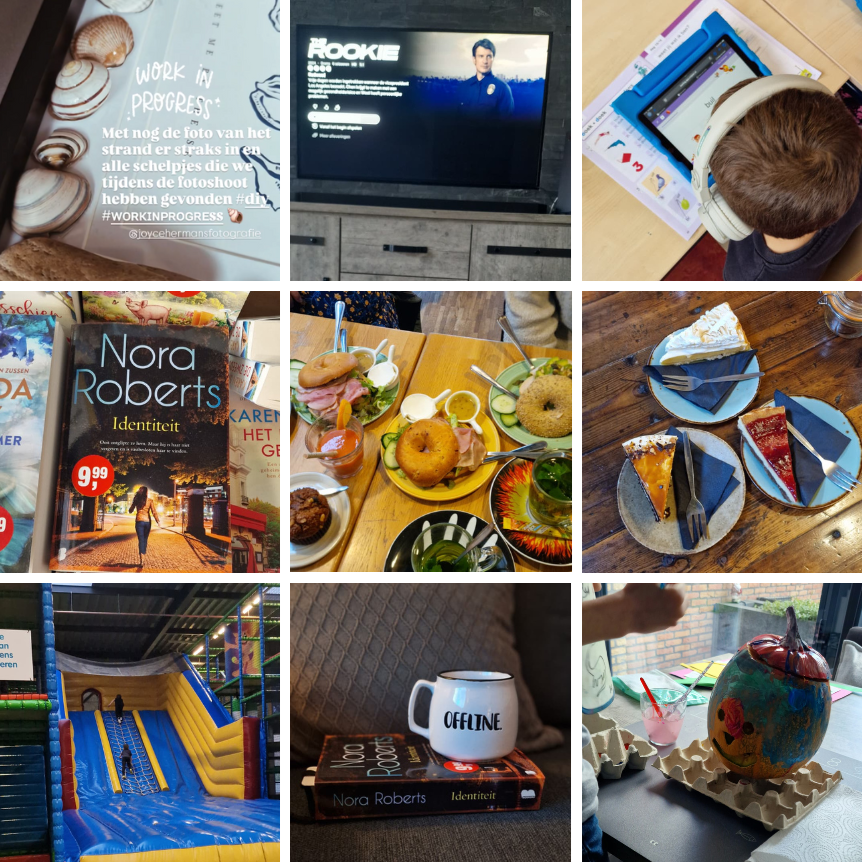 Bezig met mijn DIY schelpen lijstje, zo leuk! Inmiddels af ✦ heerlijk genieten van het eerste seizoen van The Rookie ✦ kijkochtend bij Noa in de klas, zo leuk om hem bezig te zien ✦ het nieuwe boek boek van Nora Roberts, begon ik na de Verloren Bruid serie gelijk mee ✦ een Bagel-date met mijn aller liefste vriendinnetjes ✦ een leuke date samen met mijn vriendinnetje en kids ✦ ochtendje Ballorig met een vriendje van Noa en mijn beste vriendinnetje, even bijkletsen heerlijk ✦ veel offline geweest met de fijne herfstvakantie ✦ wij gingen pompoen snijden en daarna versieren 🎃